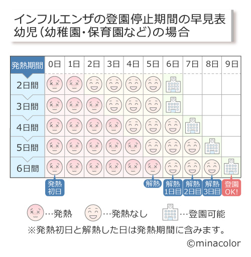 インフルエンザの出席停止期間の早見表!登校・登園はいつから?