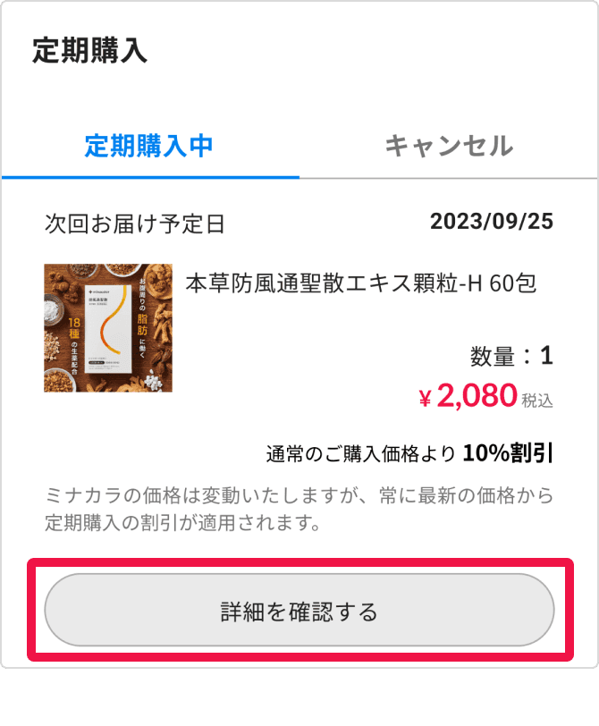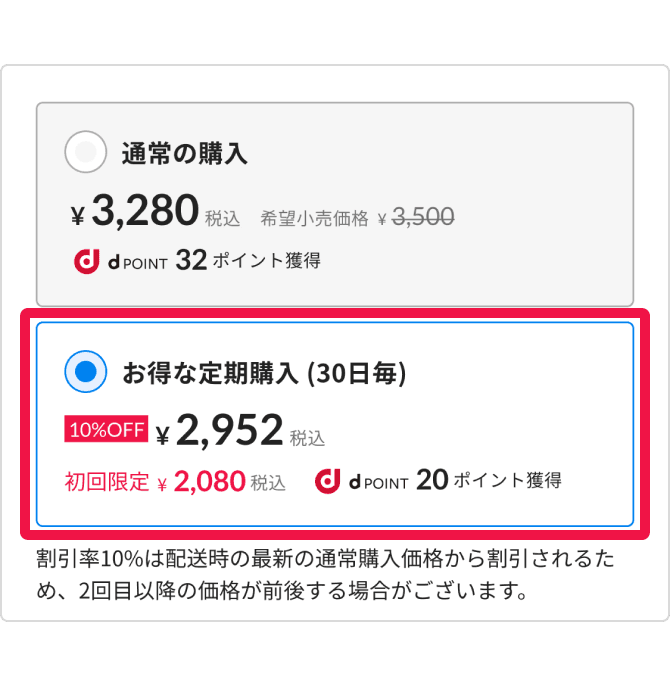 2回目以降の価格は、配送時の最新の通常購入価格から割引されるため、価格が前後する場合がございます。