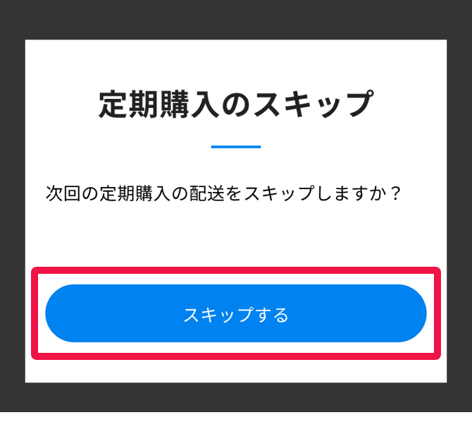 ただし、最低購入回数に定めのある定期購入商品については、商品ページに記載されている回数分の購入が完了するまではスキップ配送の利用はできません。