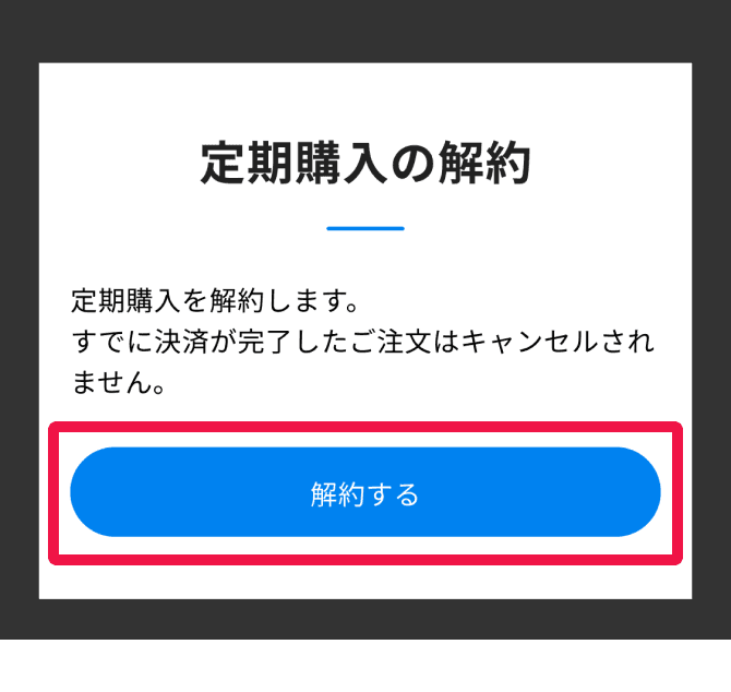 解約申請後、受付されることで、商品の定期購入契約を解約することができるものとします。